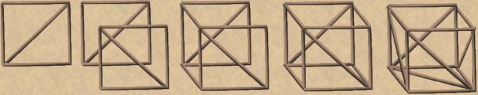 3. Now use the last four 3" pieces to connect your first two squres into a cube as shown below. Use the last of the 4" sections to strengthen the new faces of your cube.
