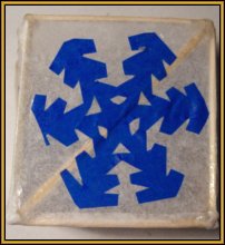 5. If you plan to decorate your lantern with coloured tissue, you need to get it ready now. In the example below I folded up a tiny piece of blue tissue and made a very small paper snowflake. You could cut out any design you fancy.